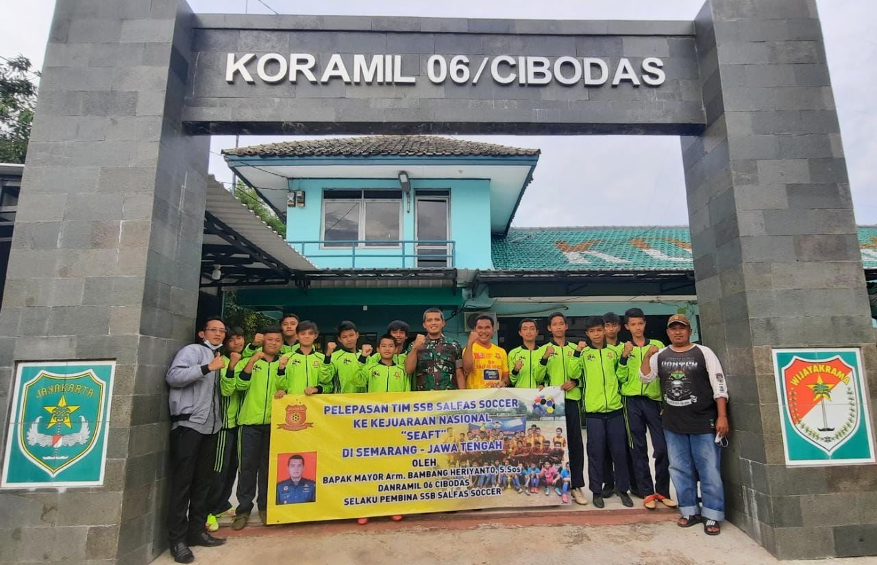 Tangerang7.com, Cibodas – Danramil 06/Cibodas Kodim 0506/Tangerang Mayor Arm Bambang Haryanto melepas keberangkatan tim sekolah sepakbola Salfas Soccer U-13 di halaman Koramil 06/Cibodas, Rabu (24/11/2021).