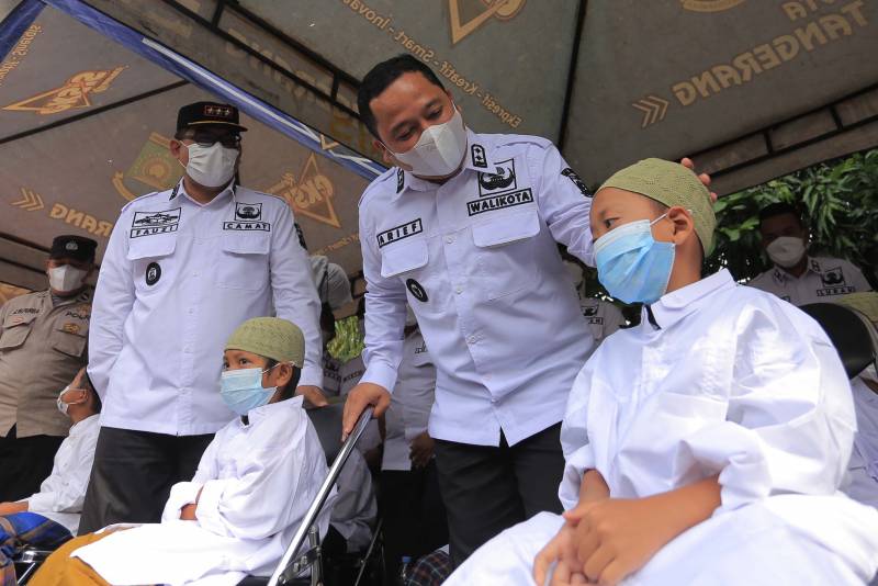 Tangerang7.com, Tangerang – Wali Kota Tangerang Arief R Wismansyah menghadiri acara khitanan massal yang diselenggarakan oleh Forum Lurah Kecamatan Karawaci di kantor Kelurahan Bojong Jaya, Jl Ki Mulud, Kota Tangerang, Rabu (29/12/2021).