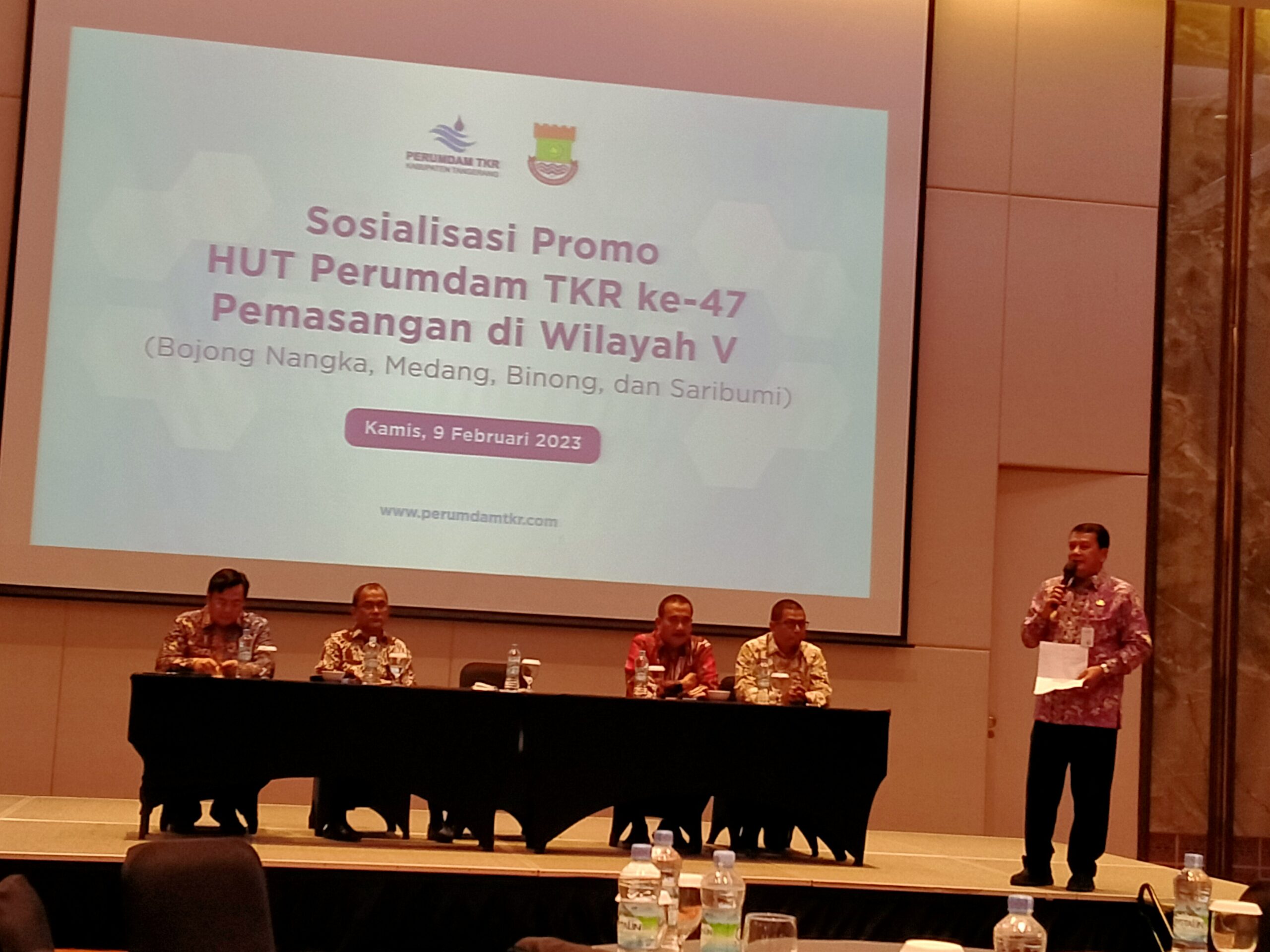 “Ketika itu, saya bertugas menjadi Camat Curug tahun 2006. Alhamdulillah, pelayanan air bersih diwujudkan Pak Bupati, Bapak Ahmed Zaki Iskandar yang merupakan putra Pak Ismet,” kata Sekda saat membuka sosialisasi promo HUT Perumdam Tirta Kerta Raharja (TKR) Kabuaten Tangerang ke-47 pemasangan di wilayah V, di Hotel Episode, Gadingserpong, Kelapadua, Kabupaten Tangerang, Kamis (9/2/2023).