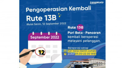 Tangerang7.com, Ciledug – PT Transportasi Jakarta (Transjakarta) kembali mengoperasikan rute Puri Beta-Pancoran (13B) mulai Senin…